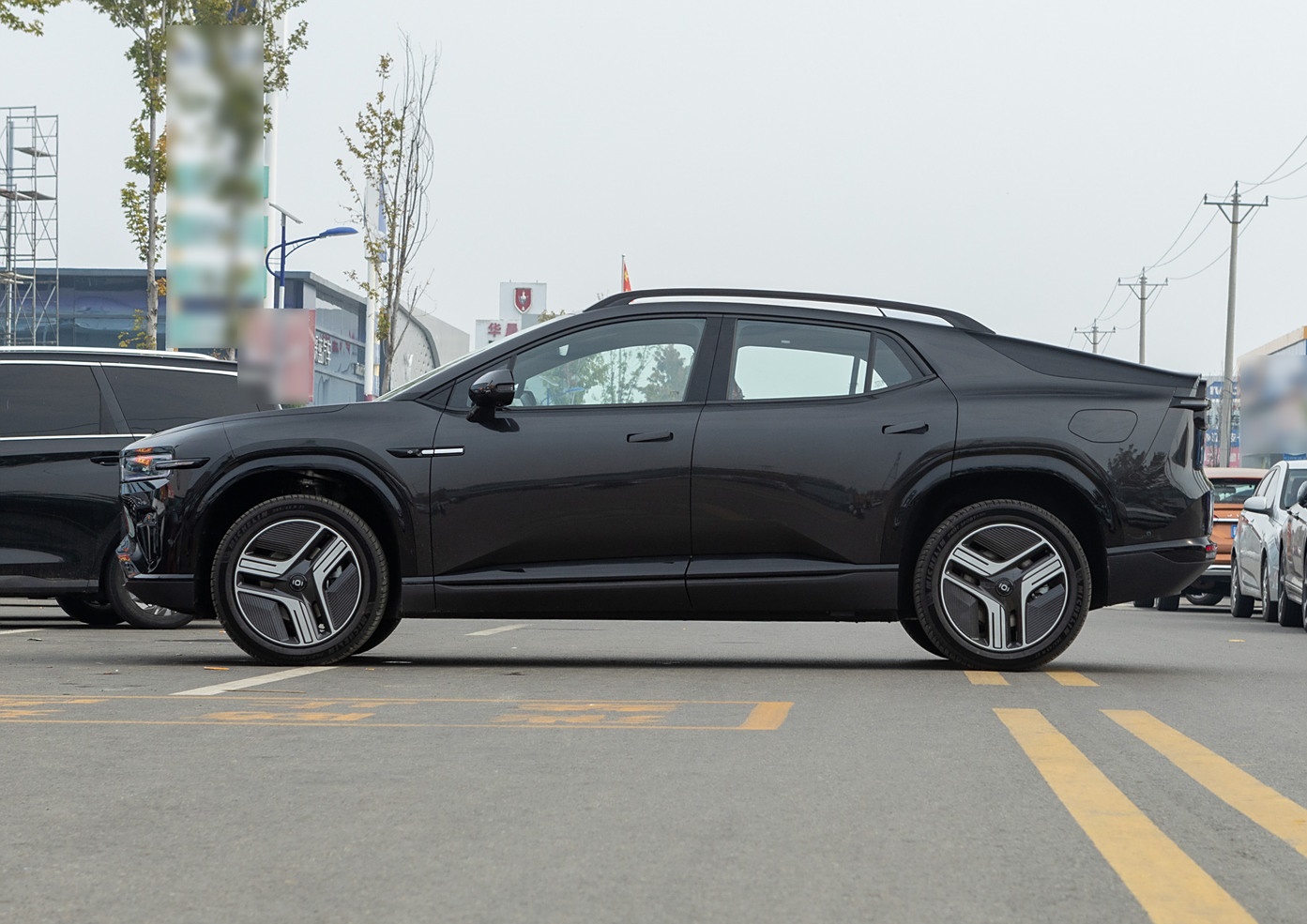 车身侧面部分的造型宽厚且饱满,车顶有着明显的下滑式造型,结合熏黑的行李架,整体的运动感得到了明显的提升,大面积的车窗因为后方宽厚的D柱与叶子板,看起来也是很厚重,车门部分则是有着贯穿式的饱满造型,结合隐藏式的车门把手,以及轮眉部分突出的线条装饰,整体肌肉感更加出色,大尺寸的轮毂为个性的封闭式造型,双拼色的造型看起来很精致。车身尺寸方面,新车的长宽高为5045/1996/1695毫米,轴距为3120毫米,采用5座设计。