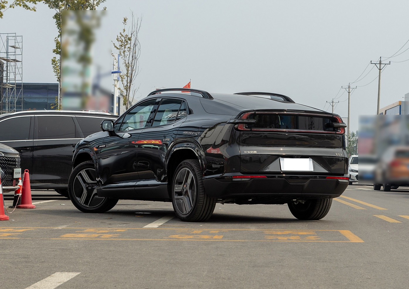 车尾部分的造型很紧凑,尾门部分有着宽厚的贯穿式尾灯镶嵌,中央有着大面积的熏黑烤漆饰板镶嵌,点亮后的辨识度很出色,尾门下方以及保险杠部分都是有着突出明显的棱角线条,结合底部大面积的熏黑饰板,整体厚重感很浓郁。